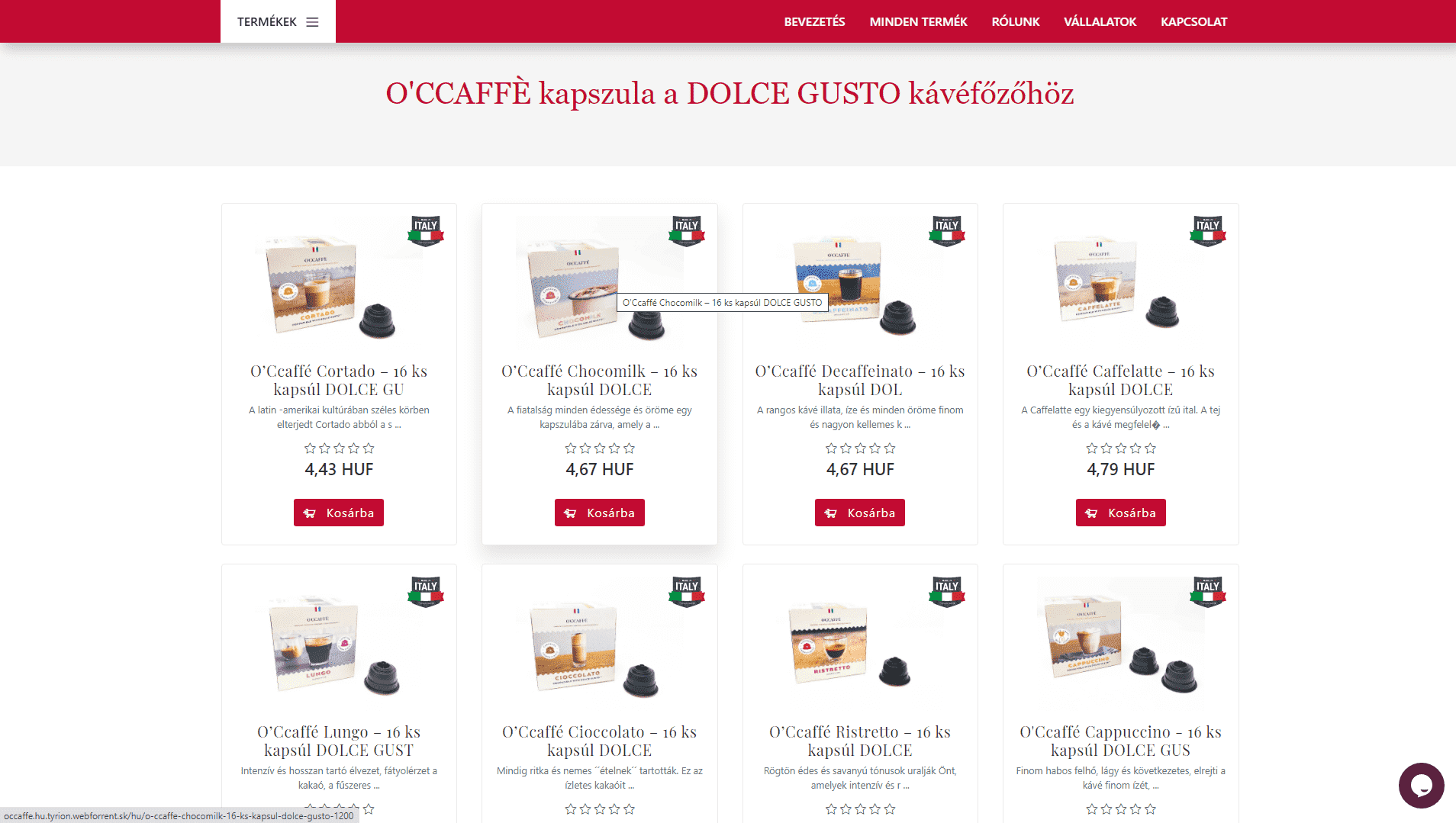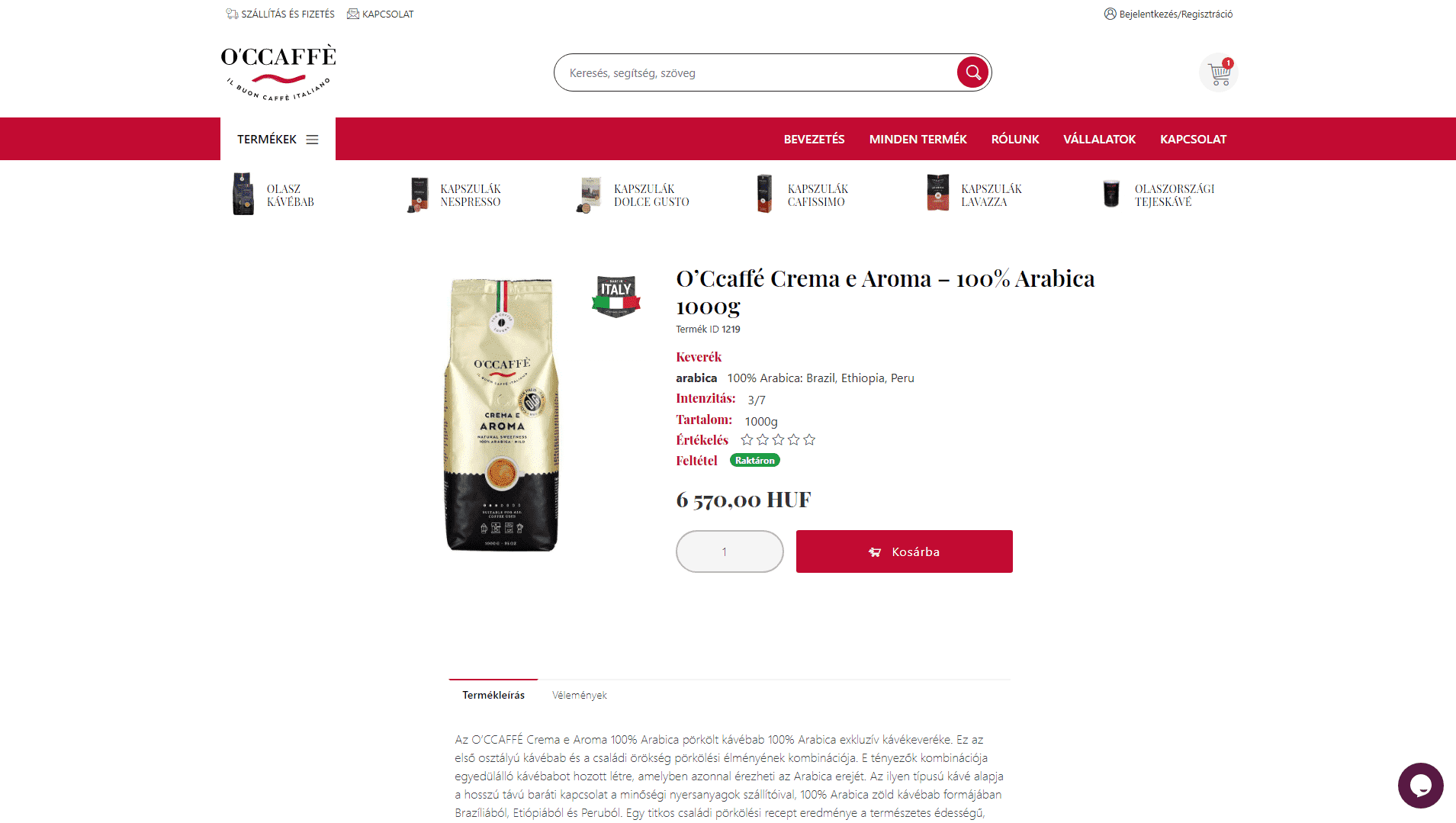 Occaffe.hu je eshop, ktorý predáva značkovú talianskú kávu Occaffe.